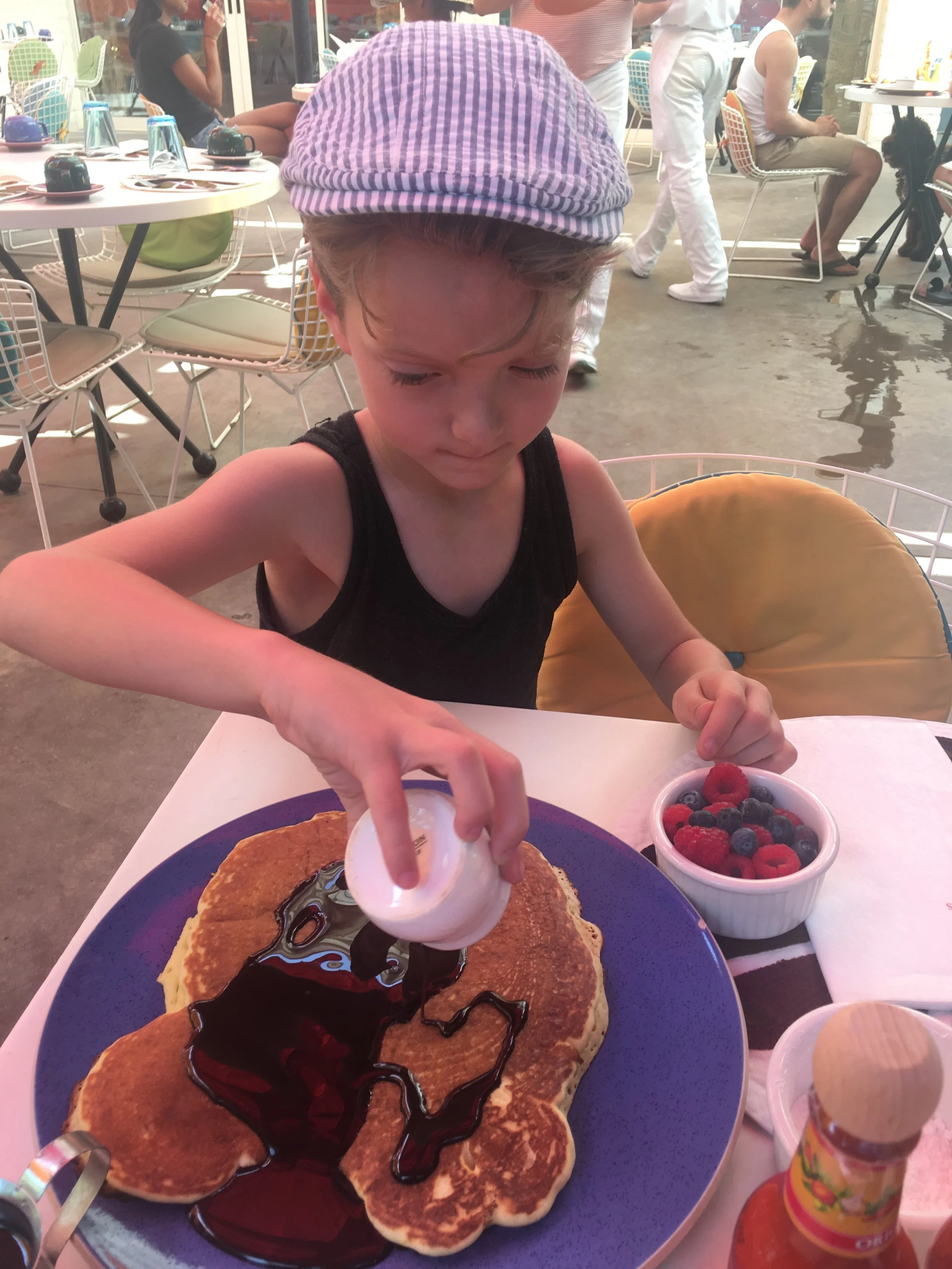 The Parker Palm Springs holds a special place in my heart. It's where we first stayed as a family after our twins were born, no longer able to stay at our go-to, the Korakia, as they don't allow children. I'll never forget setting up a make-shift nursery in the entrance hall to the room, using a curtain as a black out shade to lull our babies to sleep. I'll also never forget the screams as they cried ALL. NIGHT. LONG. and the tired look on our neighbor's face as she tried to avoid eye contact with us the following morning. So sorry.